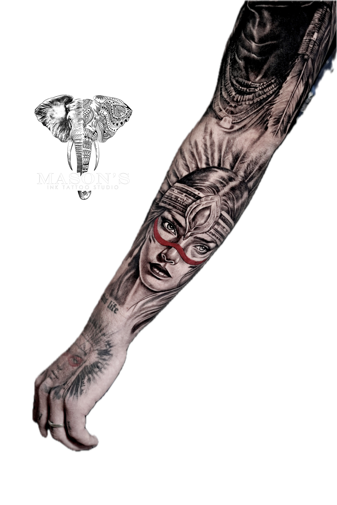 Detailed realism tattoo featuring an Apache girl, crafted with fine shading and expressive detail to capture strength, culture, and natural beauty. A powerful design for those who appreciate meaningful and artistic body art. Created by Mason’s Ink Tattoo Studio, a trusted destination for tattoo Bali and Seminyak tattoo services.
